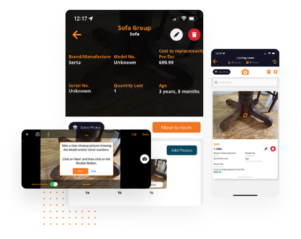 Everything you need to complete a contents claim for your insurance company is included in the app and website